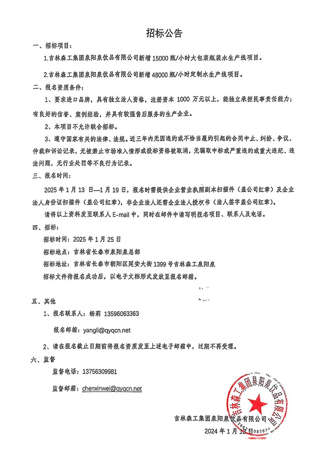 吉林森工集團泉陽泉飲品有限公司